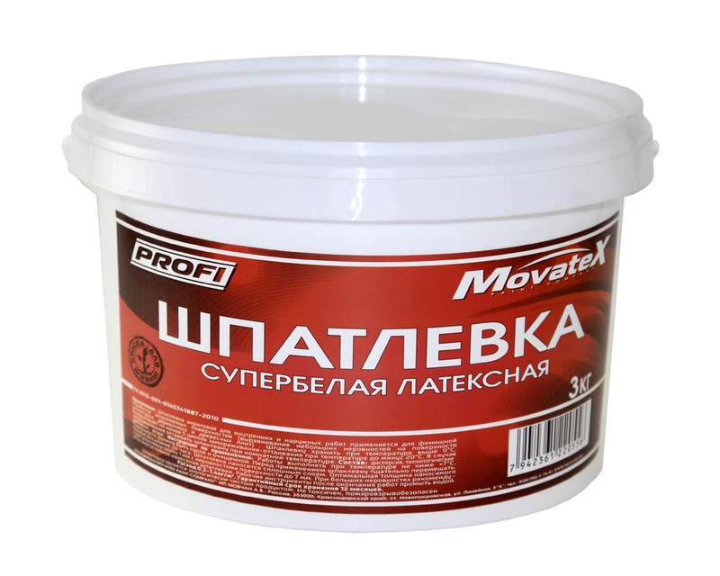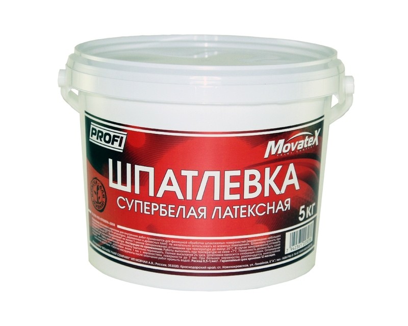 Шпаклевка Movatex PROFI латексная супербелая, атмосферовлагостойкая; не мелит; прочная гладкая матовая поверхность
